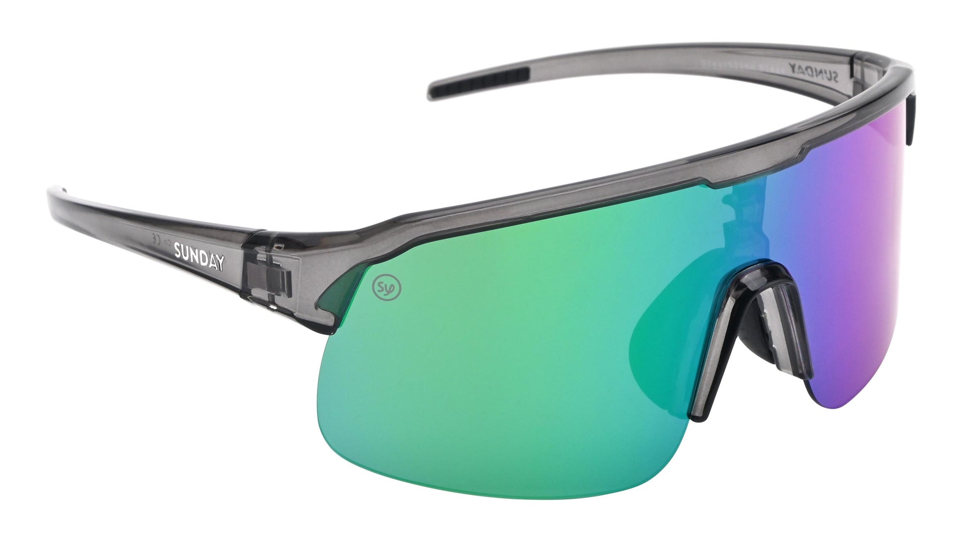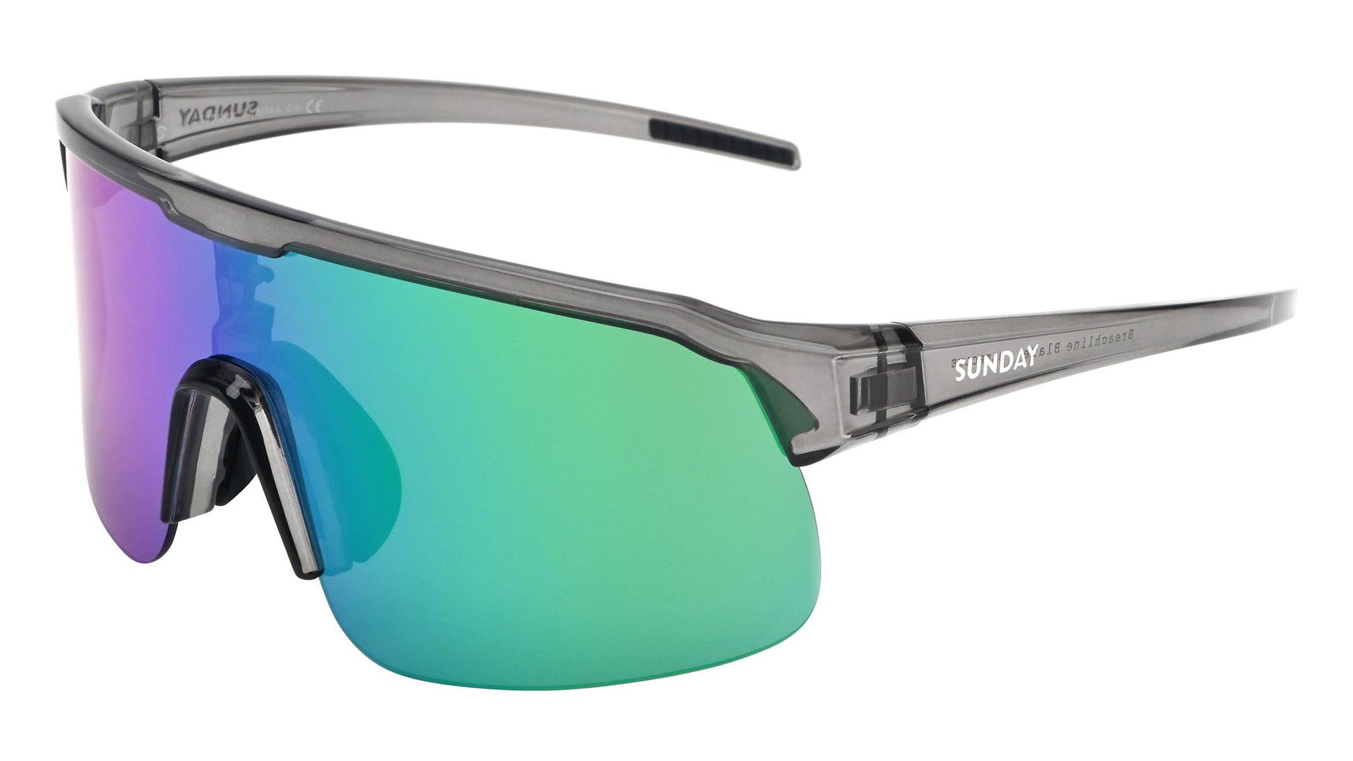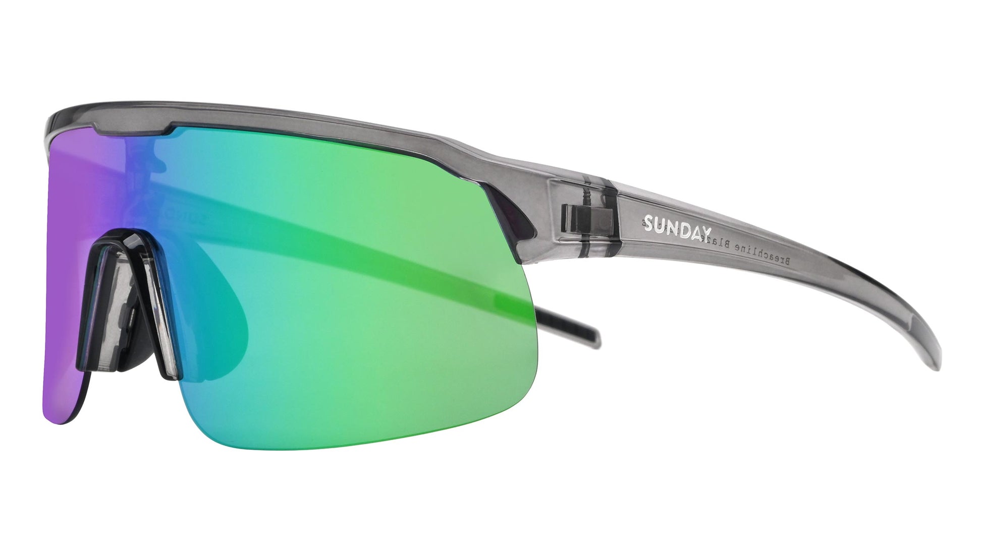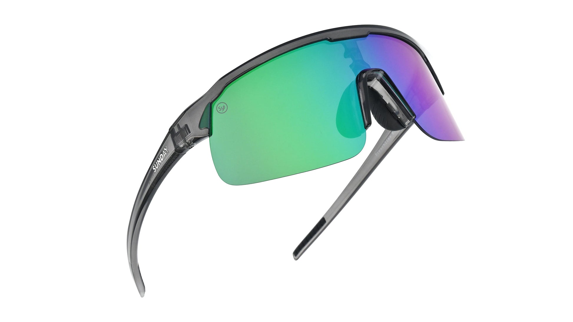 The lenses elevate both form and function. A metallic mirror that shifts from green to purple overlays a neutral grey tint, delivering clean, true-to-life colour perception while reducing strain. With UV400 protection, an anti-glare coating, and a Category 3 rating, your eyes stay shielded under intense sunlight and reflective conditions. The adjustable nose pads let you fine-tune the fit for all-day comfort.